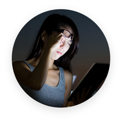 La fatiga visual es muy común en las personas que se encuentran mirando la pantalla de un ordenador o teléfono durante más de 6 horas al día. La exposición prolongada puede causar fatiga visual, picazón y ardor.3 Estos síntomas pueden empeorar al estar demasiado cerca de la pantalla o mirar fijamente durante demasiado tiempo sin parpadear ni tomarse un descanso. La posición de la pantalla y el brillo también es un factor importante.3